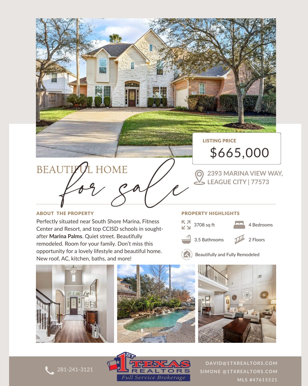Our team of talented Realtors provide you with the critical elements of success; local experience, dedicated customer service and real-time property listings. Every year since 2010, we have been recognized by Texas Monthly Magazine as Top 3% Realtors in Clear Lake – NASA.